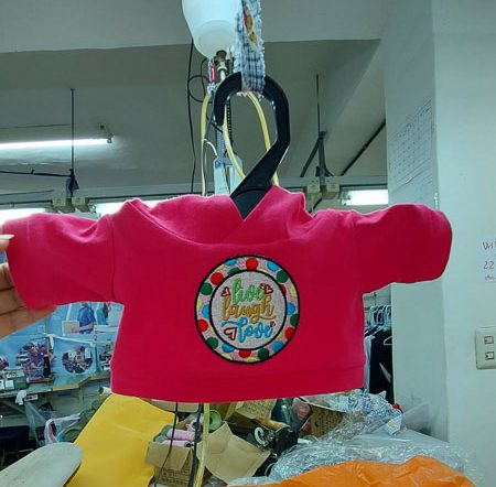 100件小熊衣服真正可以做的時間約6個工作天,這也是師傅願意超級趕工的情況下。很驚悚的在交貨的前一天,居然拿錯刺繡版,當下真的超傻眼,但因為知道真的很趕難免會出錯,品牌活動又在即,真的是跪求師傅半夜趕工重做,真的是完全老客戶相挺,一起完成了這個很艱難的任務啊!