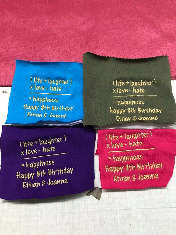 類似的圖圓形,其實建議的直徑約7公分~9公分比較好,文字呈現的高度大約都需要1公分以上會是比較清楚的。許多人都會誤會刺繡跟印刷一樣,印刷可以擠很多的字,刺繡並沒有辦法,印刷不會影響布面縮率,但刺繡會。這些的製作細節,也真的只有老練的師傅可以知道中間的經驗值怎麼拿捏。